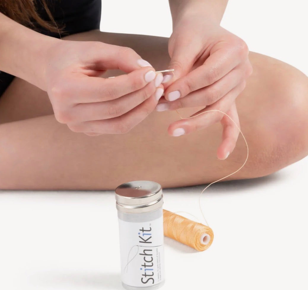 The Stitch Kit™ is a lifesaving kit for every dancer. From sewing a new pair of pointe shoes to storing them in a dance bag for sudden emergencies, it has everything a dancer needs to feel prepared on the go. Packaged in a cylindrical container, the Stitch Kit™ contains 75 yards (32.9m) of super strong thread, 2 large eye needles, and detailed sewing instructions for both ribbons and elastics. Offered in three different colors to match your pointe shoes.