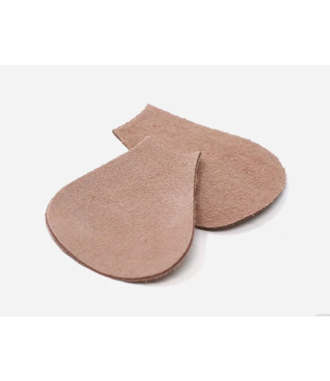 Pair of suede toe caps that can be easily attached to the platform of a pointe shoe to provide friction and grip. TH 027 suede tips will also protect the satin at the platform of the shoes from scuffs and wear and tear damage.